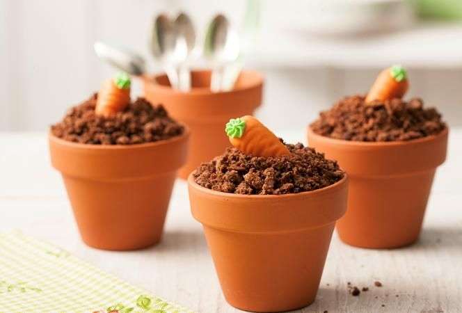 Am Nachmittag wird dekoriert. Jedes Kind bekommt seine eigene Marzipanrolle und umkleidet damit den gebackenen Kuchen. Zu guter Letzt haben die Kinder die Möglichkeit, Schokostreusel als Blumenerde und Lollis als Blumen zum Dekorieren zu benutzen.